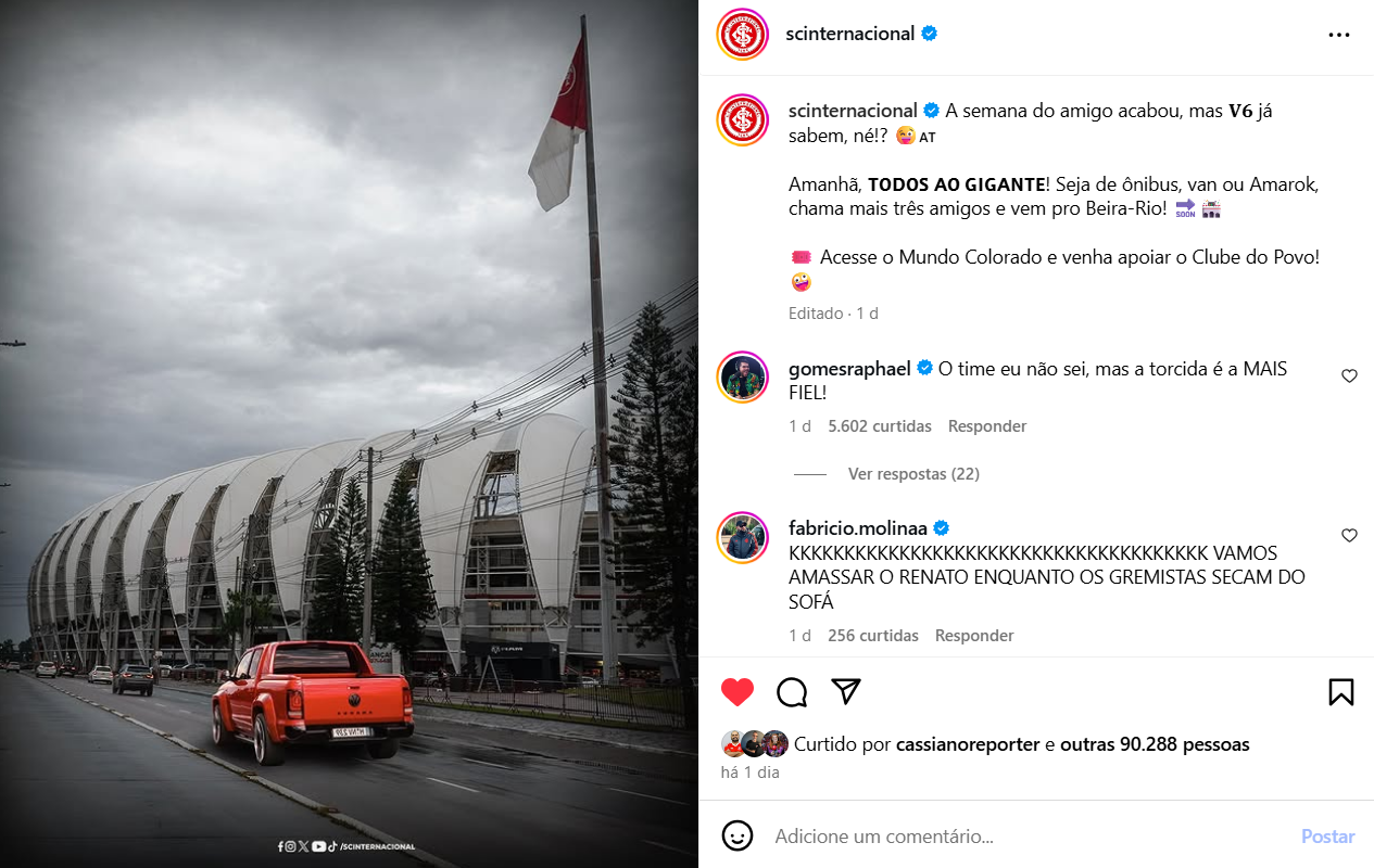 “Por mais que o futebol ainda resista em romper com os vícios de uma cultura machista e antiquada, não se esperava que o próprio S.C. Internacional, clube com histórico de campanhas voltadas à inclusão e à diversidade, cometesse um erro tão primário quanto o da última quarta-feira. Diante de uma acusação sensível, que envolve a intimidade de jogadores e de uma mulher — cuja identidade sequer foi revelada, o clube preferiu o deboche ao bom senso. E falhou. Feio”, diz um trecho da opinião de Nando Gross.