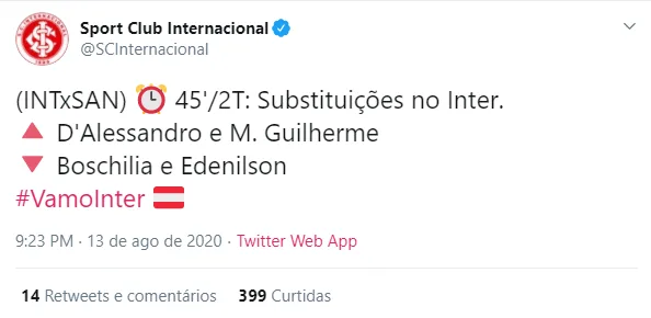 “Colocar o D’Alessandro faltando um minuto e meio. Tem que ter respeito por D’Alessandro, coloca um guri, o Peglow, qualquer um para parar o jogo, não um cara com a história do D’Alessandro”, disse alterado.