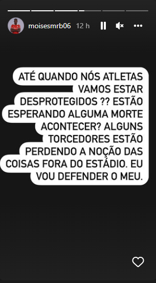 O canhoto, titular na goleada sobre o time chileno, foi às redes sociais para reclamar do ocorrido. “Até quando nós atletas vamos estar desprotegidos?? Estão esperando alguma morte acontecer? Alguns torcedores estão perdendo a noção das coisas fora do estádio. Eu vou defender o meu”, escreveu.