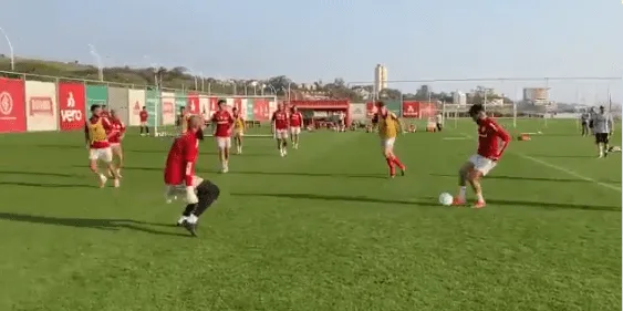 O novo reforço do Internacional pelo menos nos treinos já mostra qualidade com a bola nos pés. No treino dessa segunda-feira (10), o centroavante Yuri Alberto meteu um gol de “cavadinha”, após disputa de bola com Rodinei (veja abaixo).